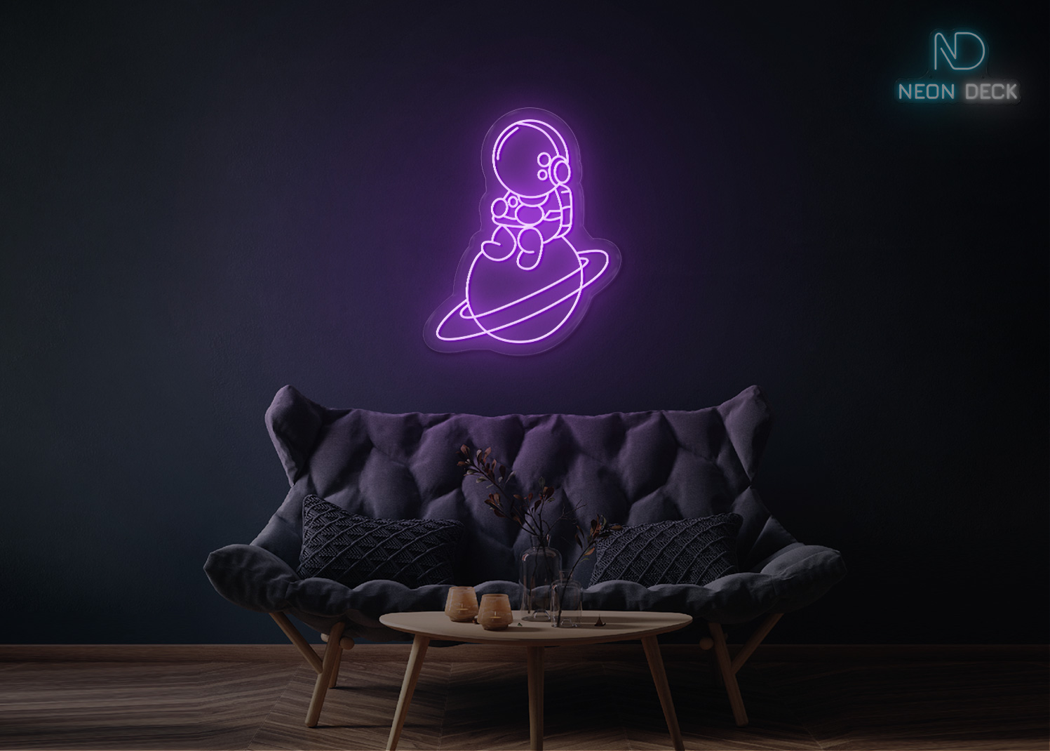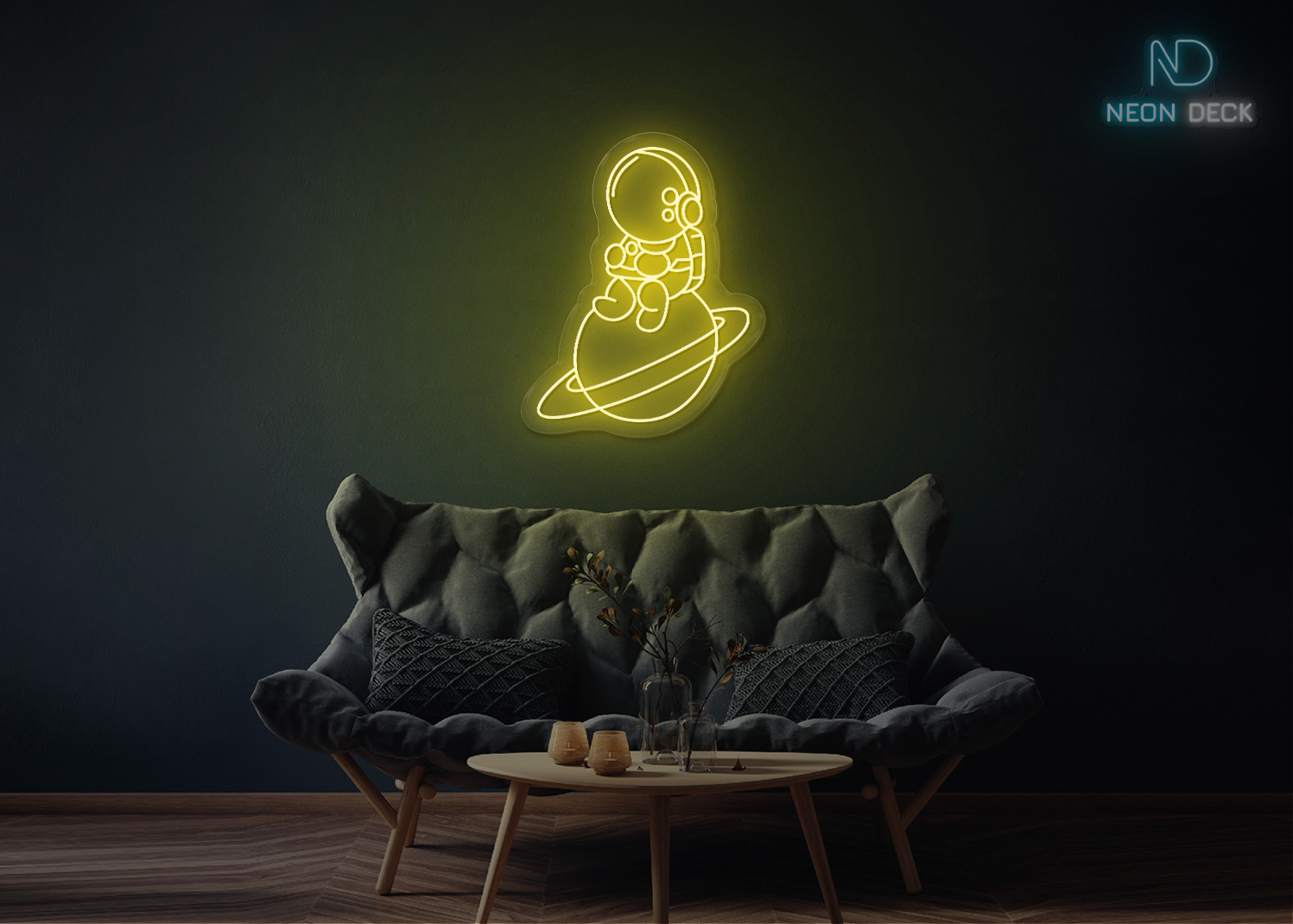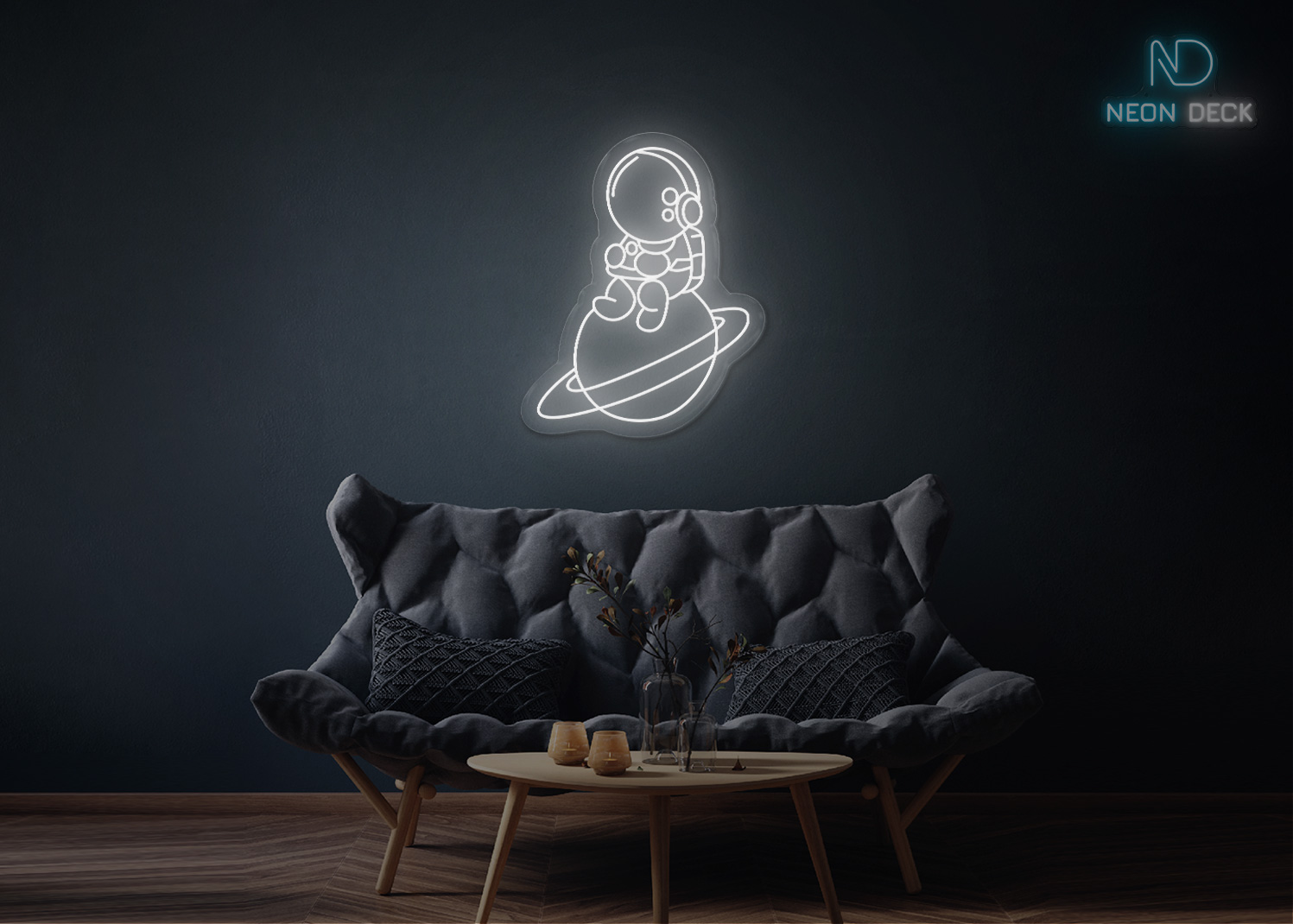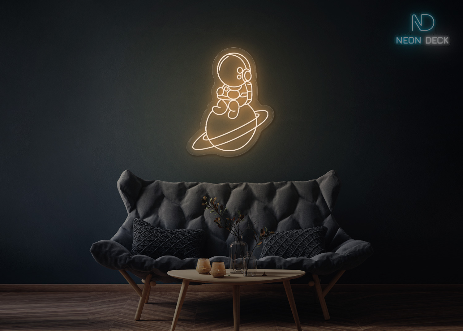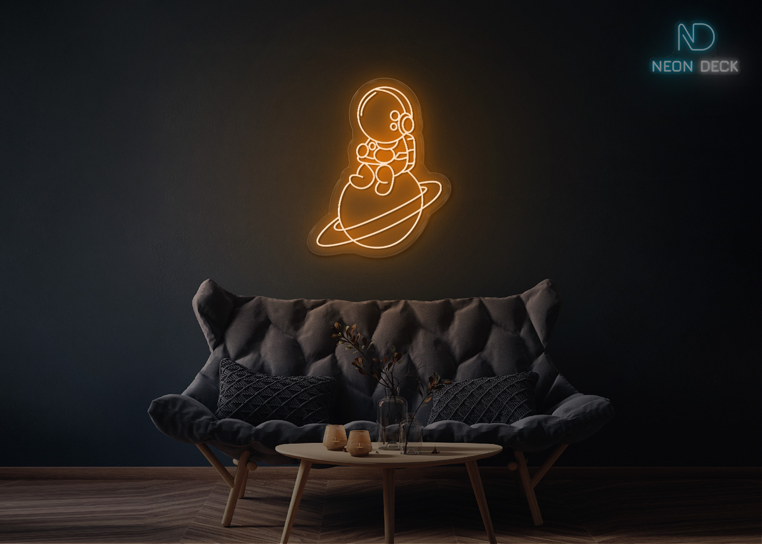 Astronaut Sitting on Solar Neon Sign