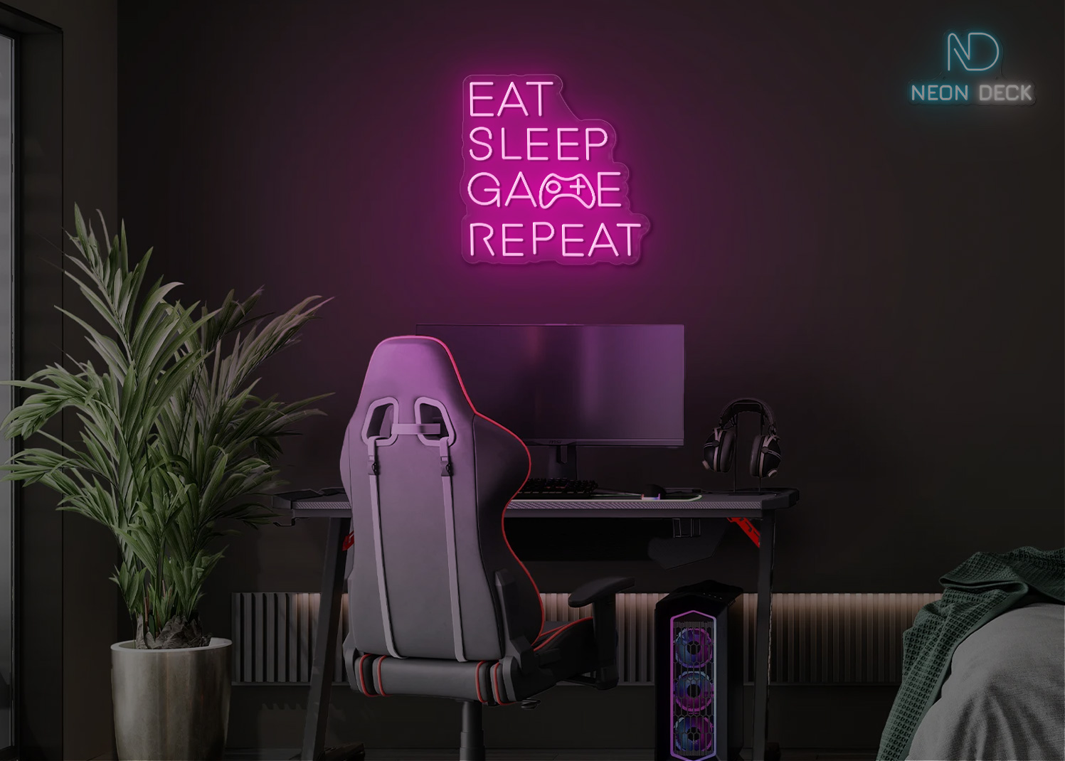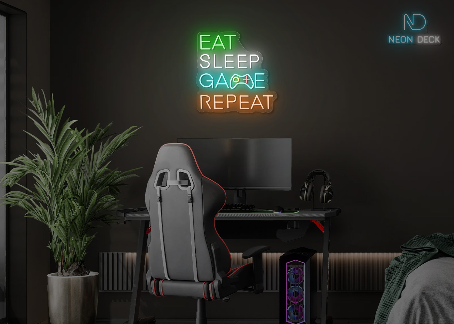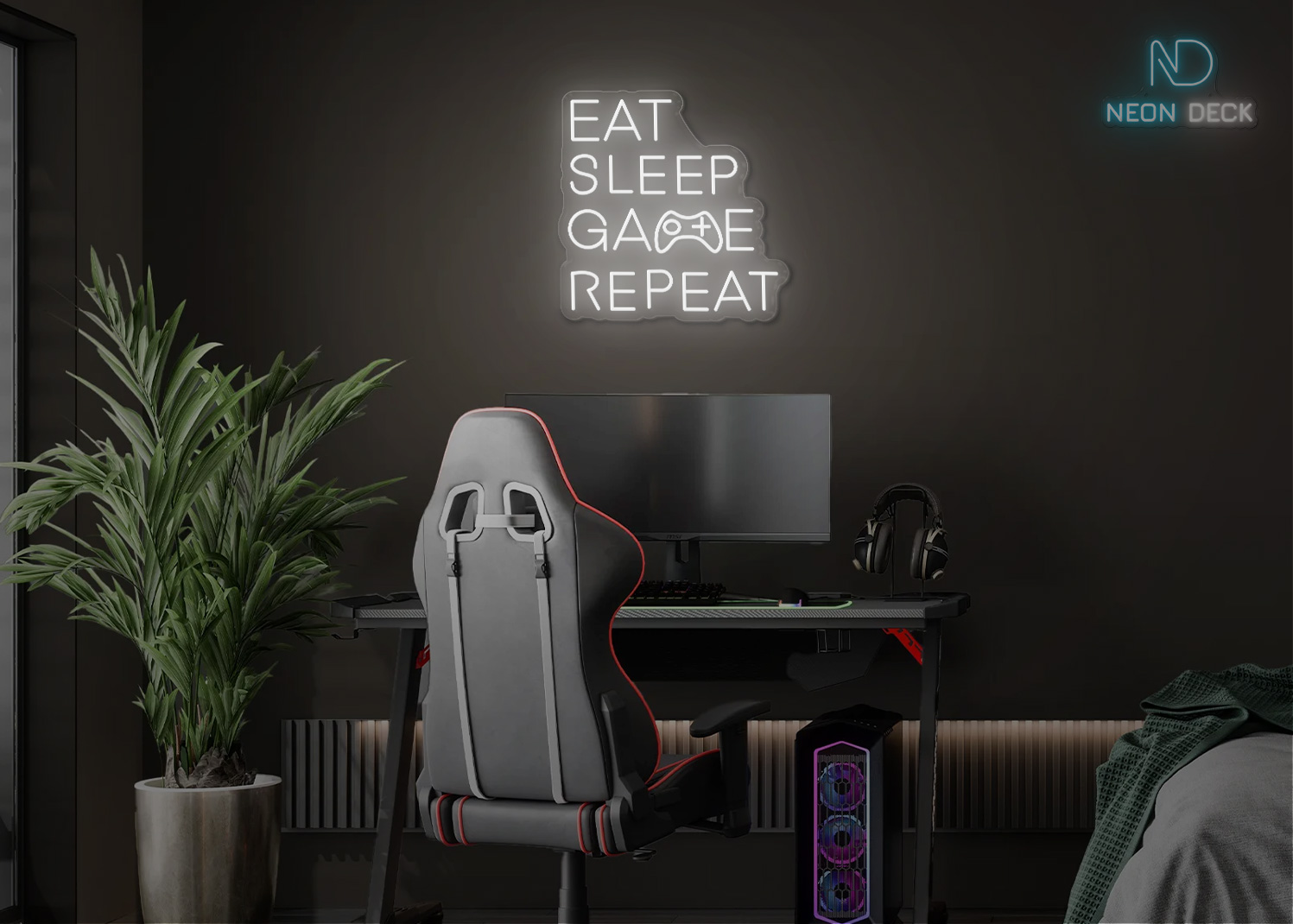 Eat Sleep Game Repeat Neon Sign