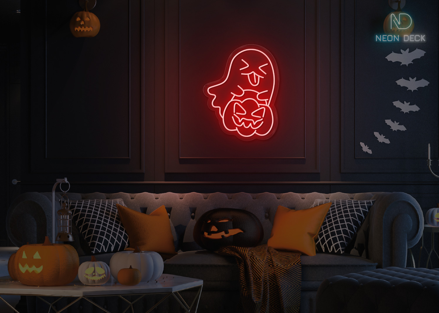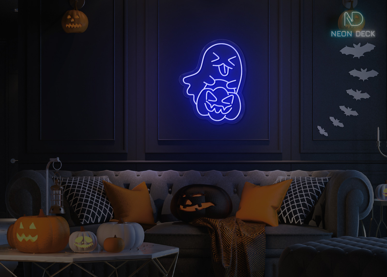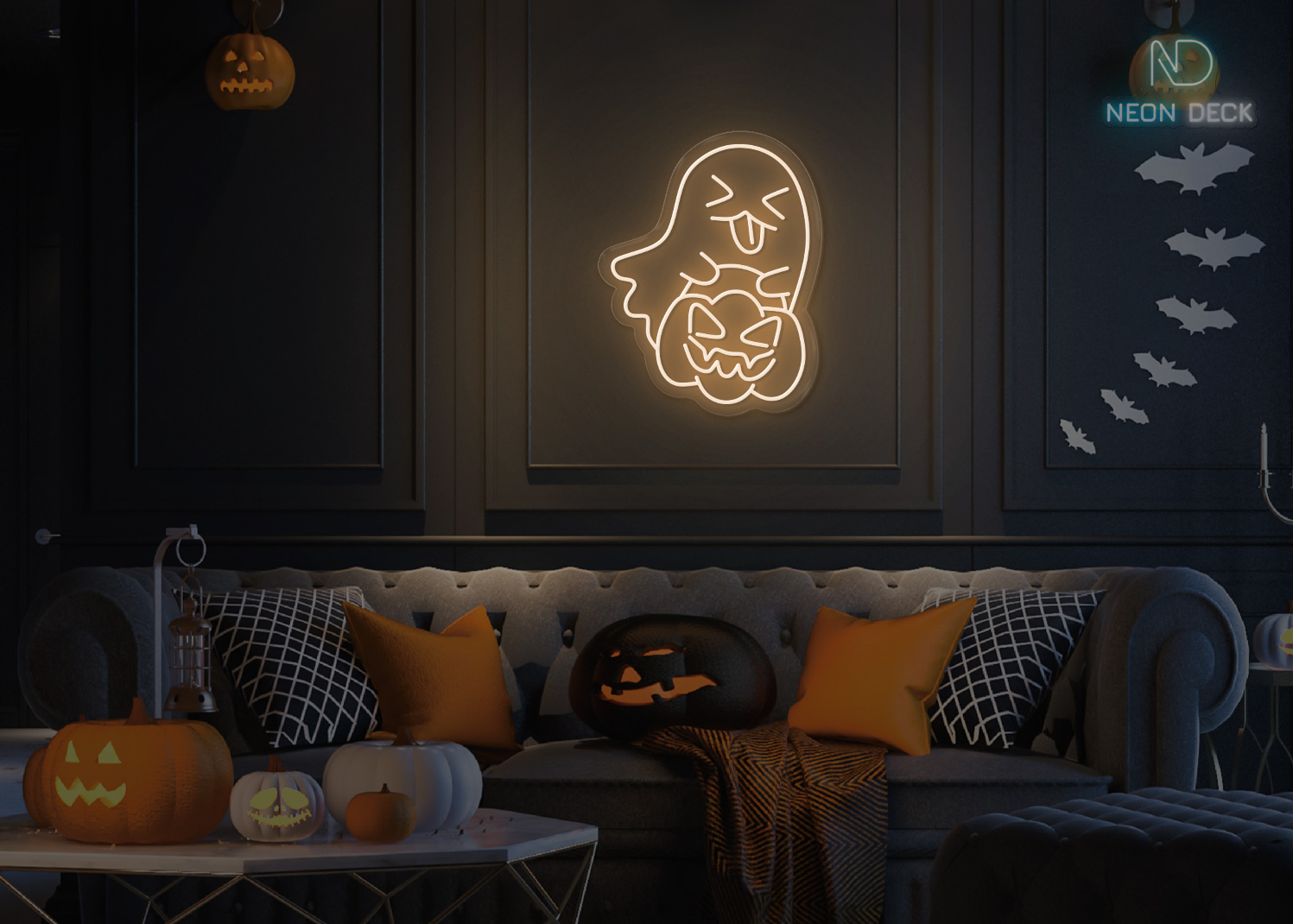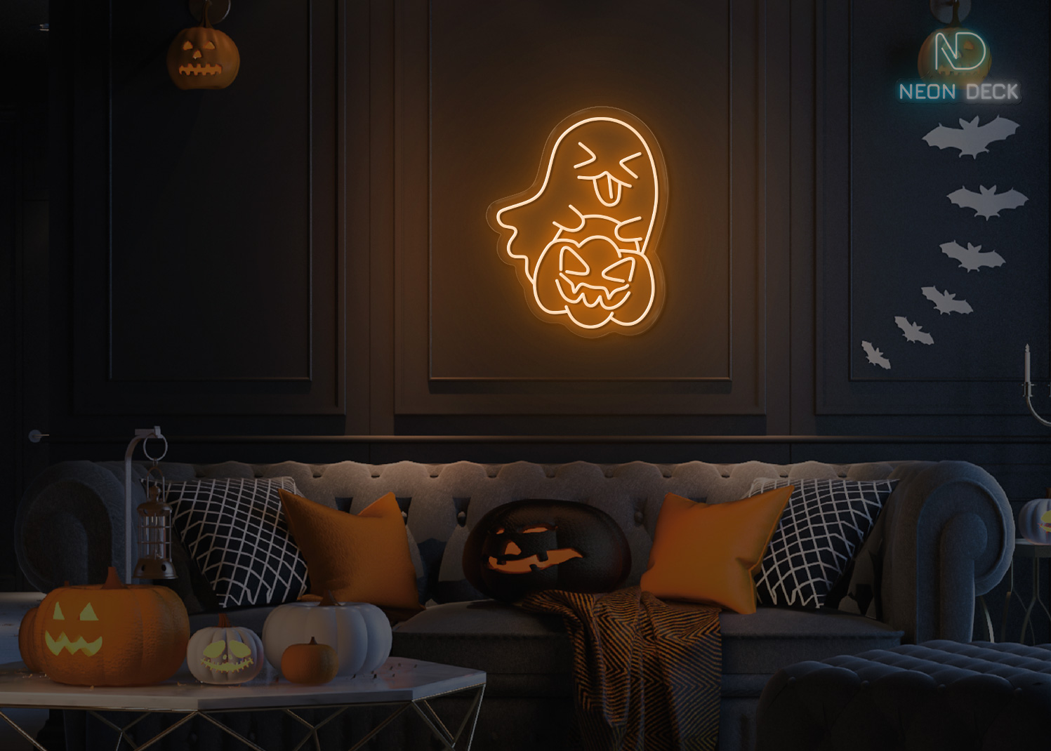 Ghost taking Pumpkin π Neon Sign