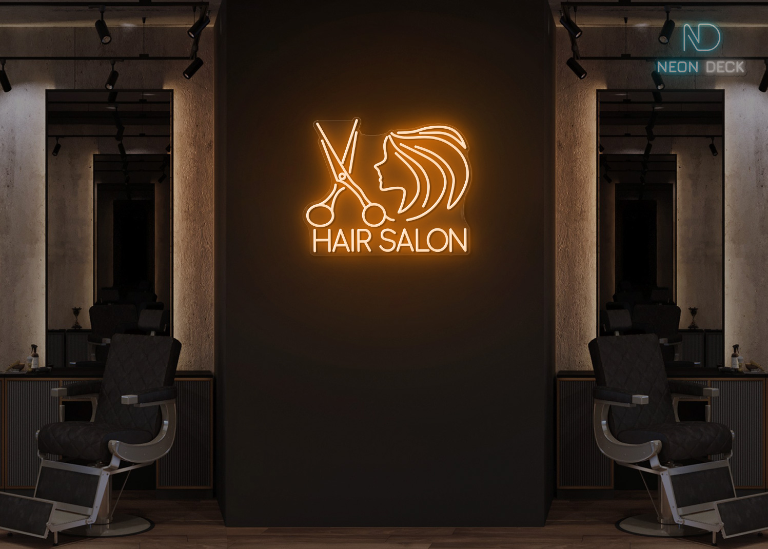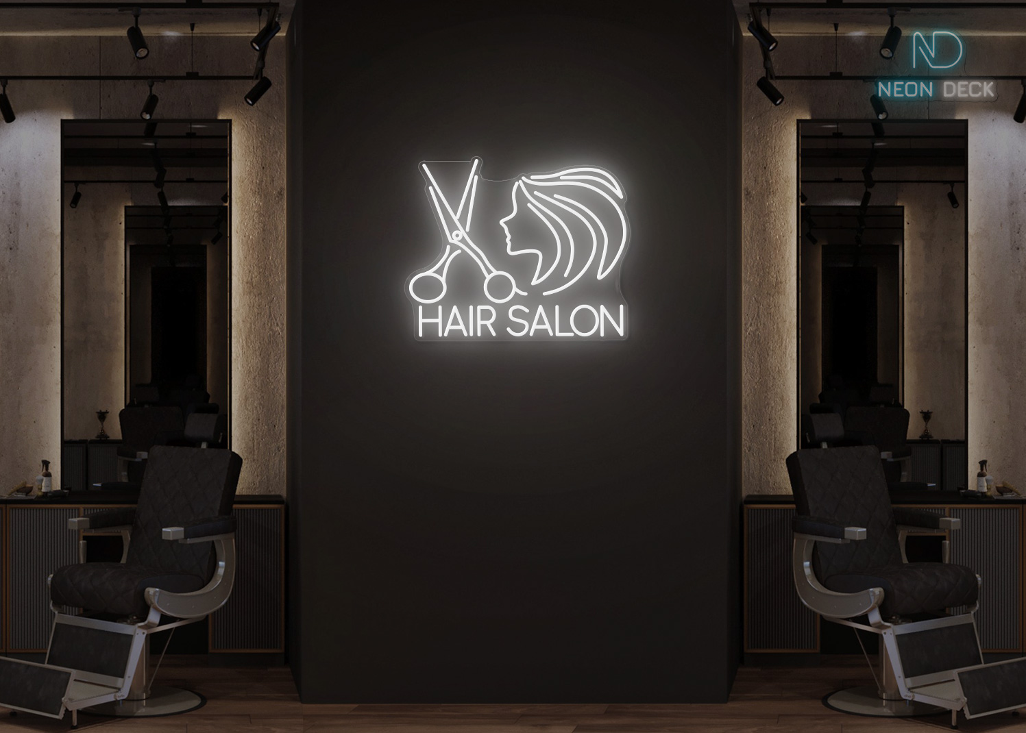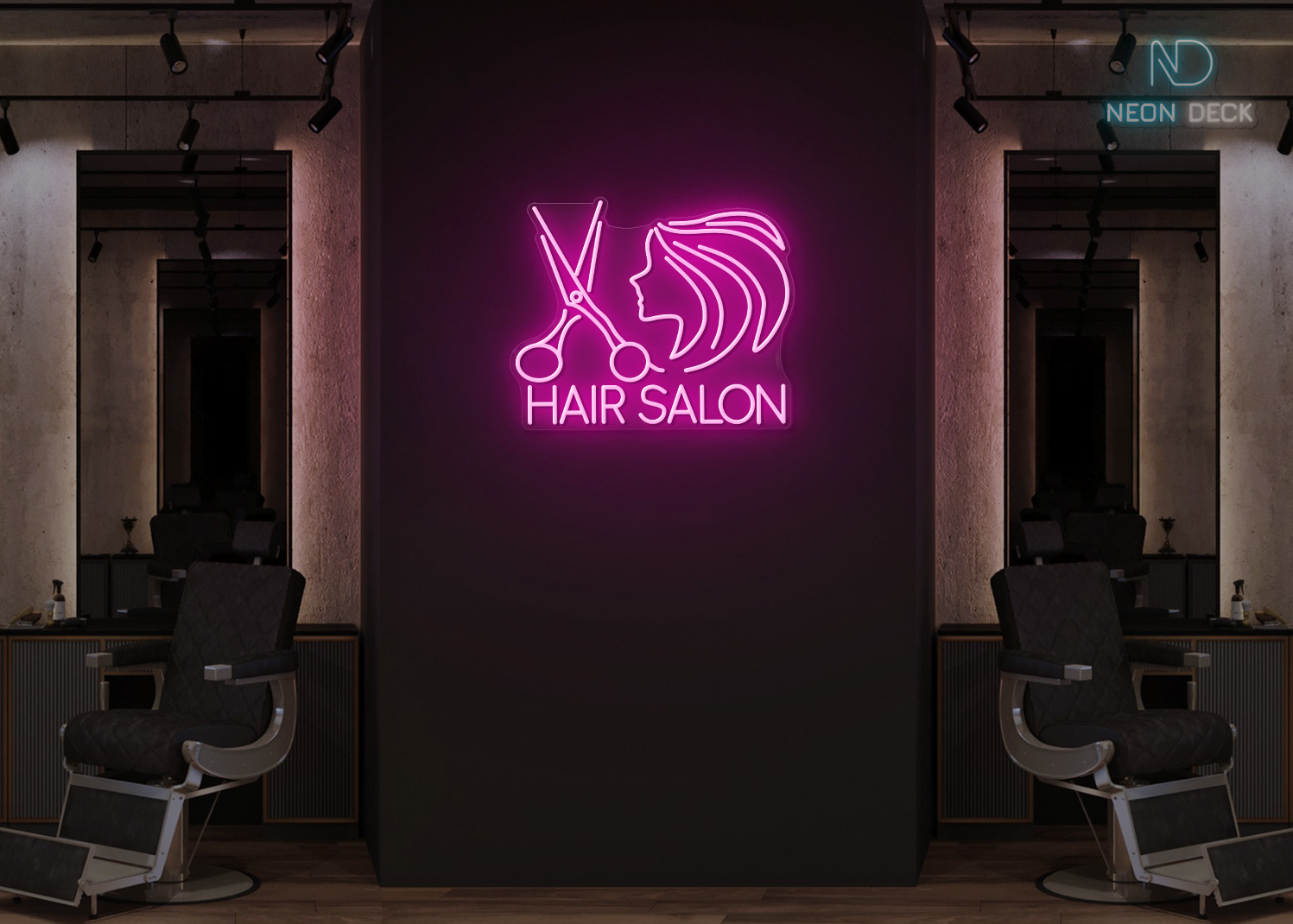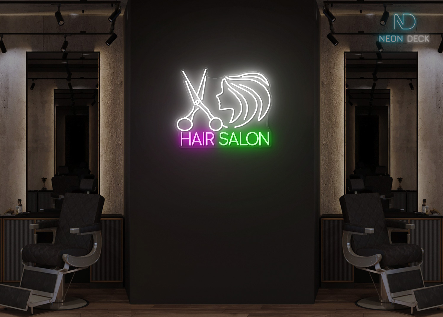 Hair Salon Scissor with Girl Face Neon Sign